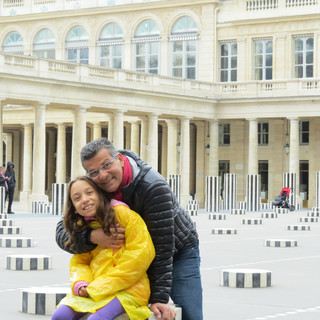 Num dos lados dos jardins, para nossa surpresa, encontramos um grande espaço, cheio de colunas listradas de todos os tamanhos. Apesar da crítica de muitos parisienses, o mosaico de colunas acaba criando um lindo contraste entre o moderno e o lado histórico do lugar. Bem ao lado fica a fonte de bolas, simples e muito bonita, ela reflete os prédios ao redor. O Palais Royal foi uma grata surpresa, gostamos muito, tiramos muitas fotos e aproveitamos para brincar um pouco entre as colunas listradas.