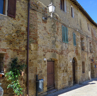 A entrada da cidade é marcada por uma monumental porta, a princípio pensamos ser uma fortificação. Na verdade, é uma das portas de acesso à cidade, que foi construída no final do século XV. A Volterrana ou Porta Nova possui torres circulares e um guarda corpo com aberturas para canhões. A porta é muito bonita e imponente.